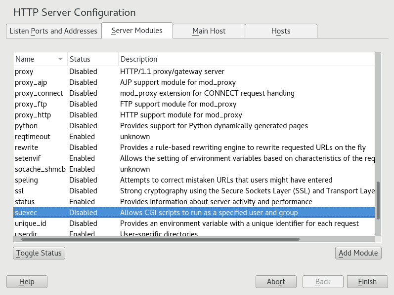 systemd Daemonjournalctl: Query the systemd JournaludevAccording to the survey from http://www.netcraft.com/, the Apache HTTP Server (Apache) is the world's most widely-used Web server. Developed by the Apache Software Foundation (http://www.apache.org/), it is available for most operating systems. openSUSE® Leap includes Apache version 2.4. In this chapter, learn how to install, configure and set up a Web server; how to use SSL, CGI, and additional modules; and how to troubleshoot Apache.