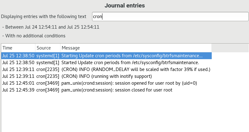 with the journalctl syntax), you can use the YaST journal module. After