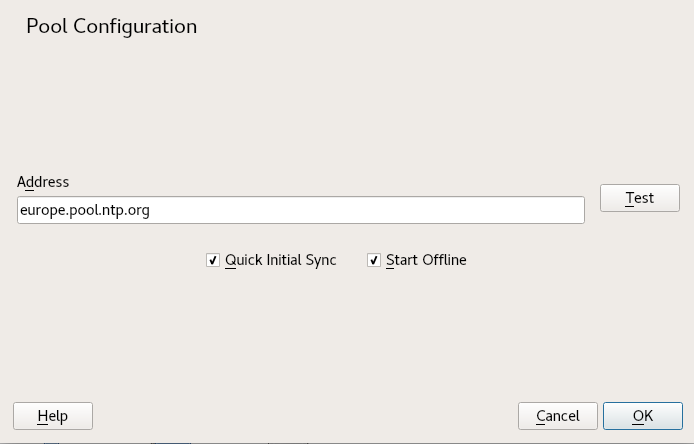 Time servers for the client to query are listed in the lower part of the window. Modify this list as needed with , , and .